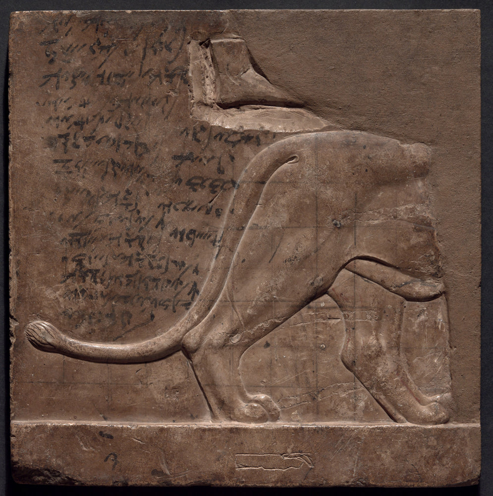 Double-sided Relief Plaque Depicting a Lion and Birds by Ancient Egyptian