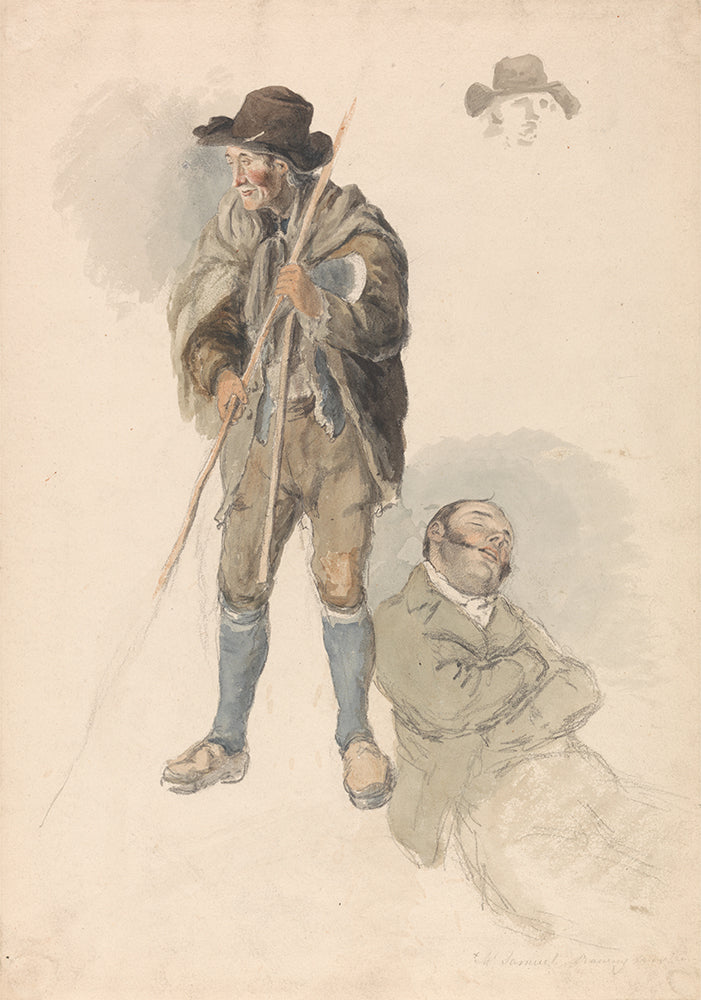 / Figure Studies; a Farm Worker, Mr. Samuel, the Drawing Master Reclining and Dozing, and a Slight Sketch of a Man in a Hat